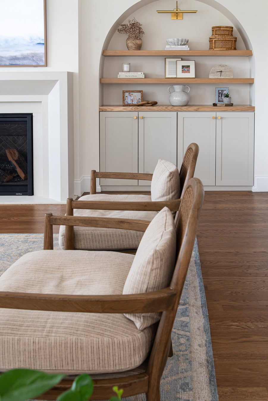 This trick not only serves the purpose of keeping your coffee table neat but corralling items on a tray helps to ground them to the space and instantly draws the eye to the objects. Plus, it looks pretty! Use what you already know about odd groupings and texture to really create a vignette that wows.