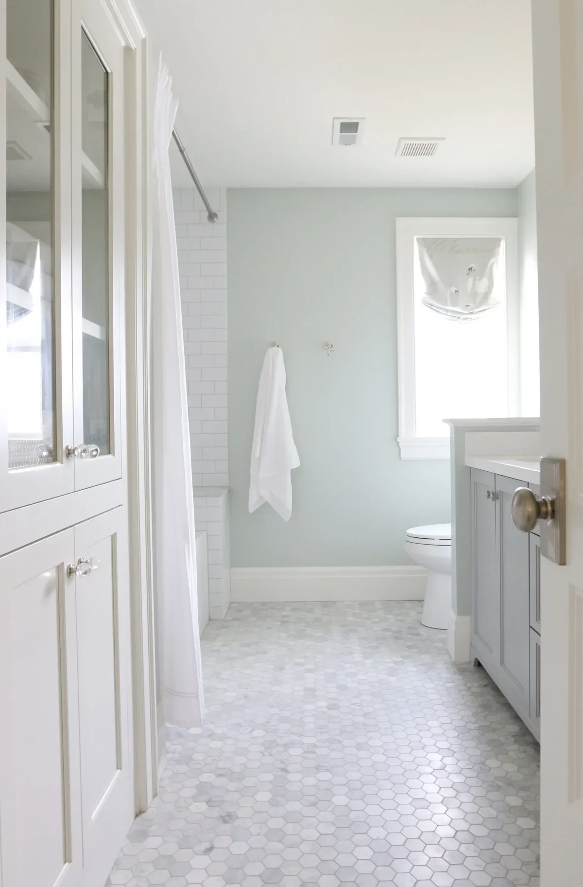 Hi Jenna! I loved this post, and wanted to consult you since I am using Sea Salt by SW for my master bedroom, but I am unsure of what to paint the master bathroom. I do like the spa-like colors. Since my vanity is white, with white subway tile, light grey tile floor and black matte hardware/faucet/lighting, what color do you recommend? What color will transition nicely from the Sea Salt bedroom into the bathroom? There is one window that will give nice afternoon light.