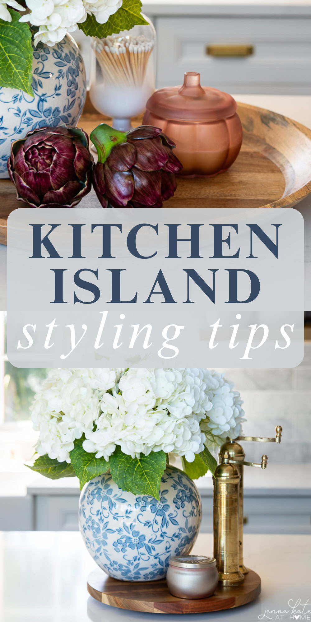 Whether you have a large island in a spacious kitchen or a small kitchen island in a cozier space, styling your island can create a focal point that brings the whole room together.
