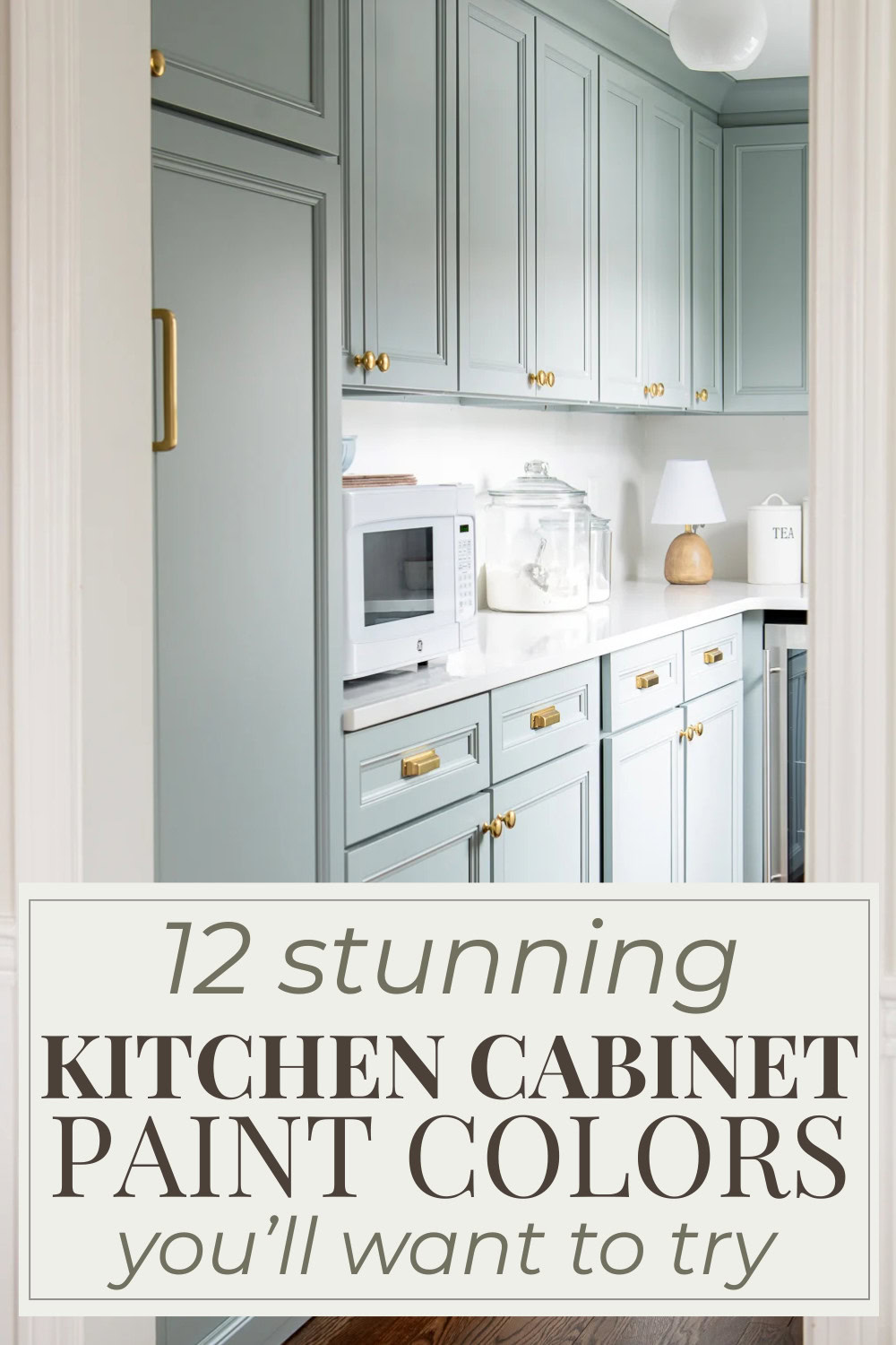 This is what I used in my pantry and I still love it. It’s a soft blue-gray that can lean slightly green depending on the light.