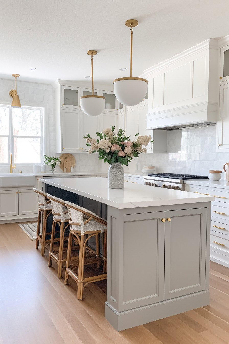 classic kitchen paint color palette with sherwin williams pure white and benjamin moore chelsea gray cabinets.