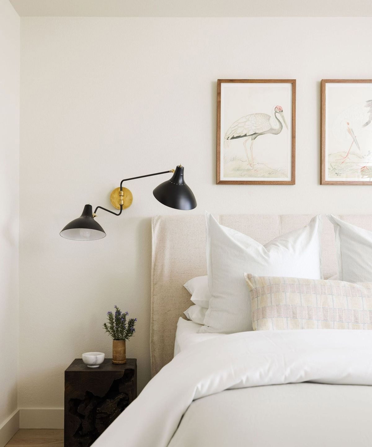 How beautifully soft and cream is Alabaster in this bedroom? The soft gold lights and warm wood tones really work beautifully with it, too.